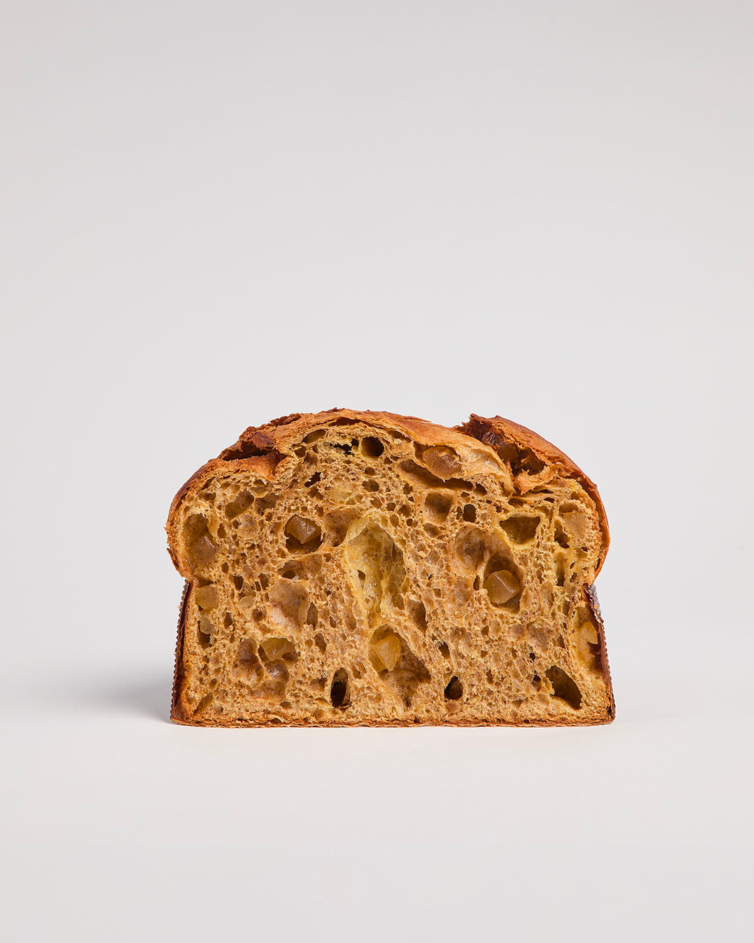Panettone alle spezie di ispirazione nord-europea, che ricorda i Cardamomo Buns Danesi o il Pain d’épices dell’Alsazia impreziosito da canditi di mela e gelatine al bergamotto, sempre auto prodotte in laboratorio.