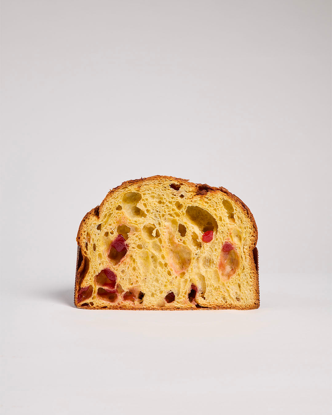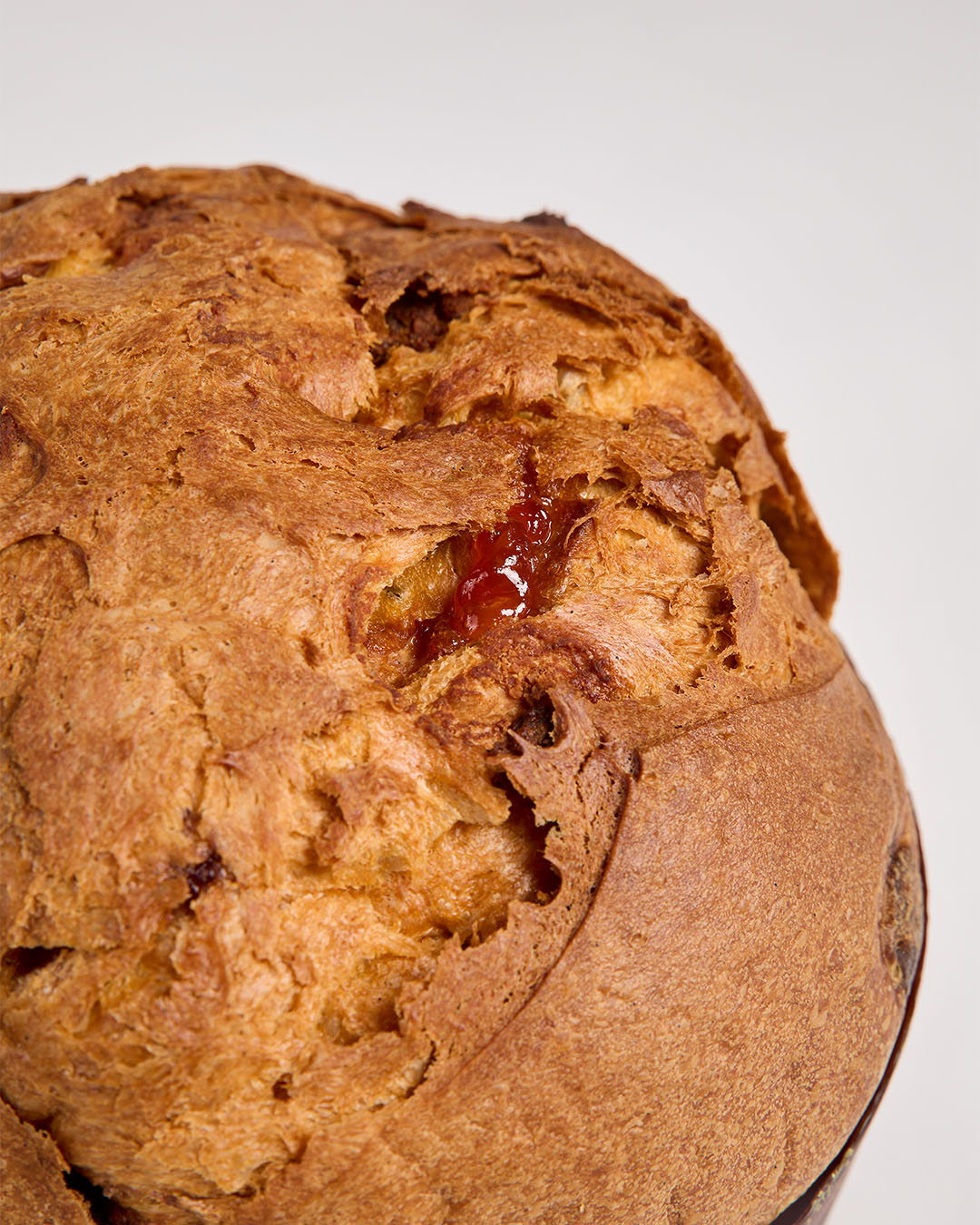 Panettone ai lamponi e cioccolato bianco dal gusto raffinato grazie all’unione delle gelatine di lamponi, prodotte nel nostro laboratorio, con la delicatezza del cioccolato bianco.