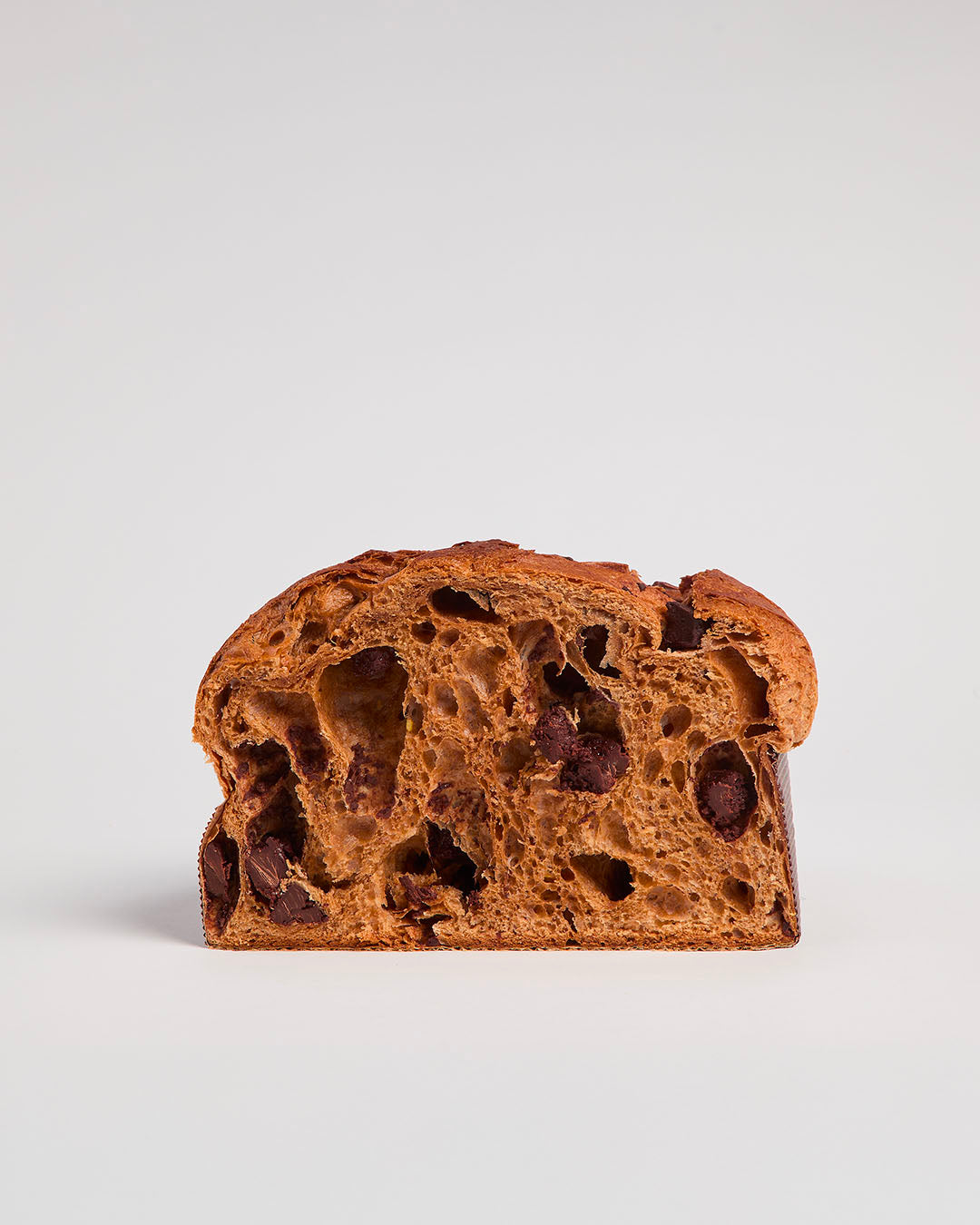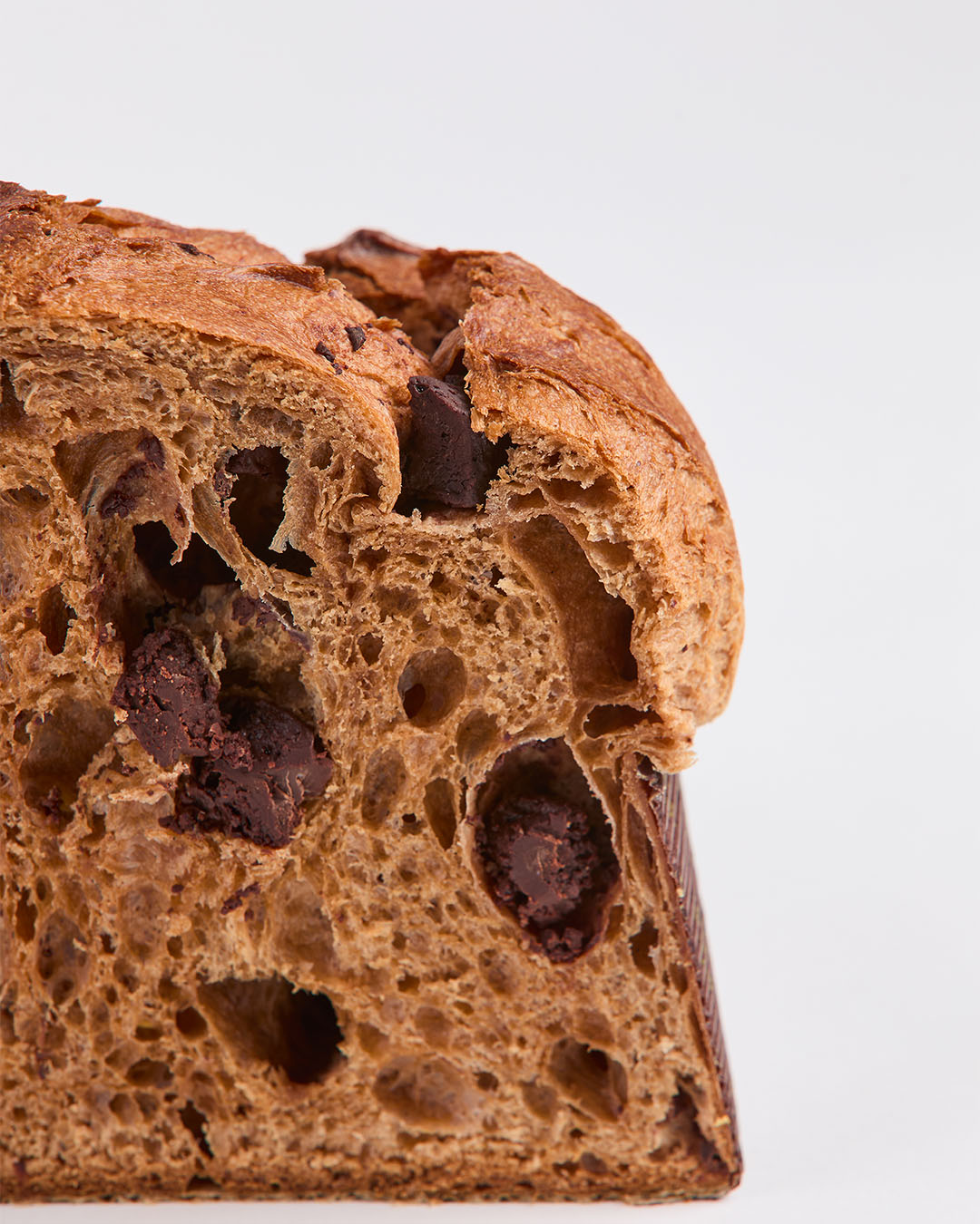 Panettone al cacao con cioccolato fondente 65% monorigine Indonesia. Per il nostro “Goloso” abbiamo scelto il cacao e il fondente artigianale di Bagai cioccolato: una piccola cioccolateria piacentina che produce artigianalmente il cioccolato a partire dalla tostatura delle fave di cacao fino alla tavoletta.